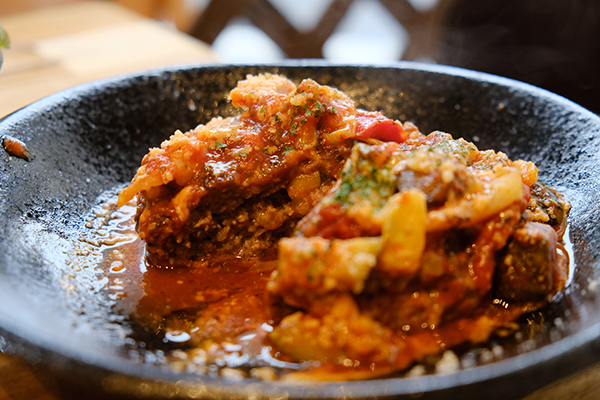 スジ、バラ、ランプと、牛の3種類の部位を使った、デミグラスソース仕立てのオリジナルのハヤシライスです。