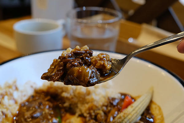 柔らかく煮込んだ牛肉にコクのあるソースの味がしみ込んで美味。野菜や玄米ごはんとの相性もよく、大満足。小さなお子さんにも食べやすいハヤシライスです。