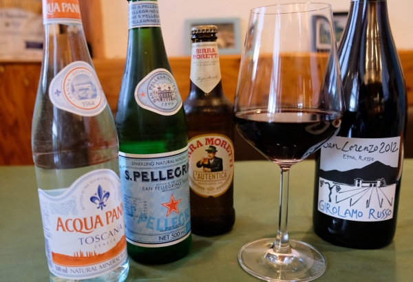 パスタや調味料、ワインはもちろん、ミネラルウォーター、ビール(モレッティ)などもイタリア産にこだわります。(生ビールは日本製・アサヒの熟撰)