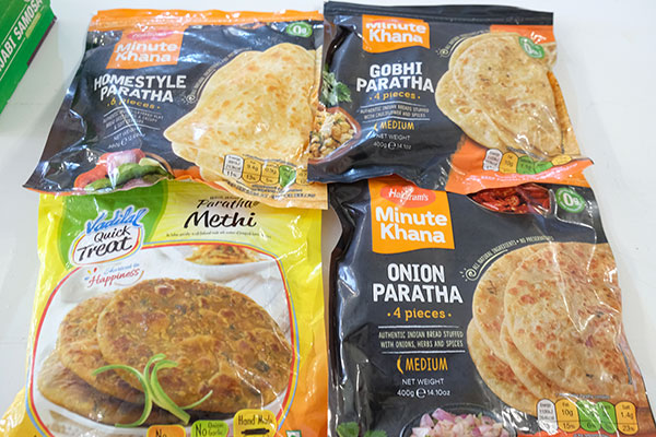 ギーを使う料理のひとつに、インド人のソウルフードである薄焼きパン「チャパティ」がありますが、チャパティをアレンジした「パラータ」を自宅で簡単に味わえるのが「冷凍パラータ」。何種類かあってお好みで選べます。