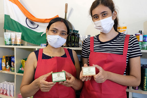 女性スタッフふたりがおすすめのオーガニック石鹸は、399円から450円(税別)。