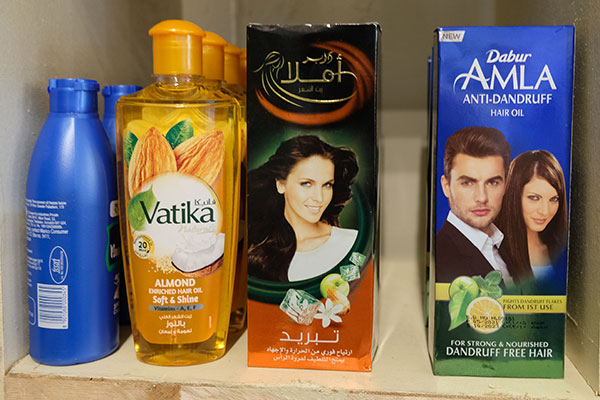 美意識が高いインドの女性の美肌や美髪を支える、スキンケア・ヘアケア用品のコーナーも充実。