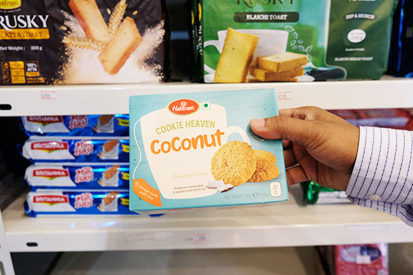 「甘いお菓子が多いですが、日本の方には、こちらが人気です」と、オーナーのサティッシュさんが教えてくれたのは、ココナッツクッキー(375円/税別)。