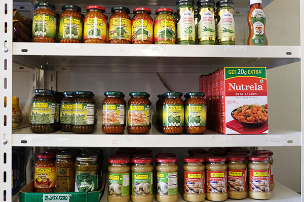 こちらの棚には、パラータを作る時のタレとして、また、豆カレーやライスとヨーグルトを食べるときの付け合わせ、お酒のおつまみとして使うことも多いというピクルスやペーストがずらり!