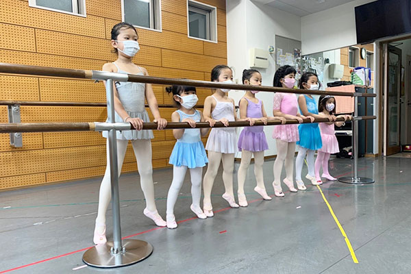 こちらは、幼児科クラスのレッスンの様子。3歳から年長さんまでの子どもたちが、バレエシューズを履いてバレエの基礎から学びます。