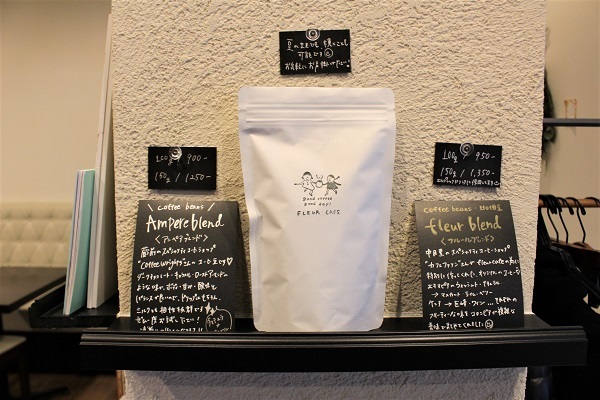 「カフェ ファソンの豆は、オリジナルにブレンドしてもらった『フルールブレンド』。お客様からの要望にお応えし、コーヒー豆の販売も行っています」