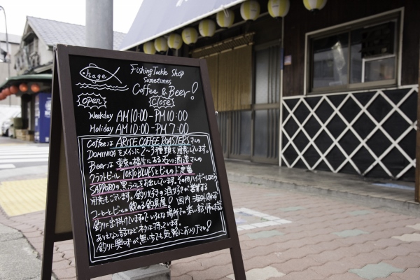 釣具屋さんと聞いてきましたが、思いっきり「Coffee&Beer!」と書いてあります。