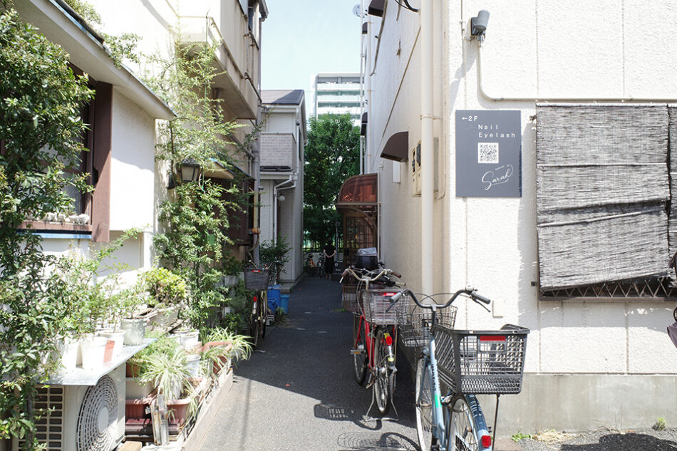 小さな路地の一角にひっそりと置かれた看板。