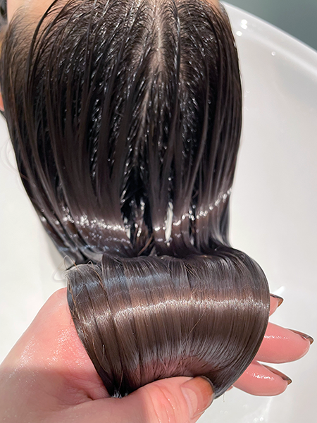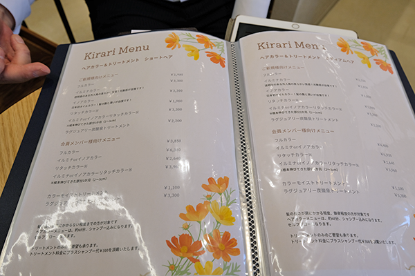 「さらに潤いのあるつややかな髪を取り戻したい方のために、カラーモイストトリートメント(1,100円)やラグジュアリー炭酸トリートメント(3,300円) などのオプションメニューもそろえています」と寺井さん。