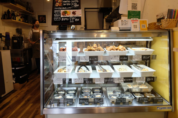 カフェのような佇まいのこちら、実は、厨房でシェフが作る家庭的なお惣菜を販売するお店なんです。