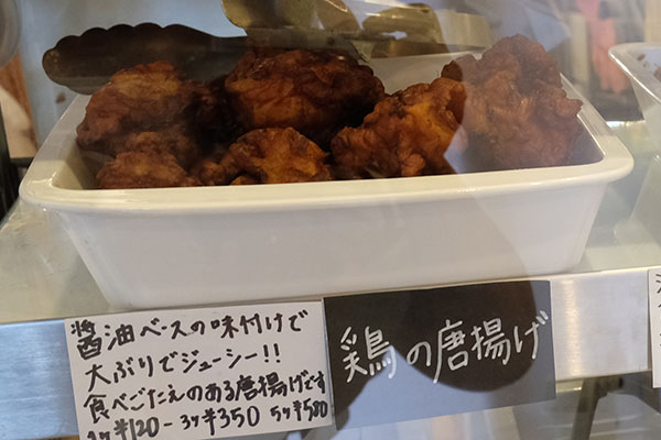 醤油ベースで味付けされたジューシーでクセのない、ふっくらした唐揚げは、これでもかとばかりに大きくて、食べ応えあり!1個120円、3個350円、5個580円とたくさん買うほどお得になります。
