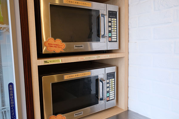 備え付けの電子レンジで総菜を温め、食事をするも良し。