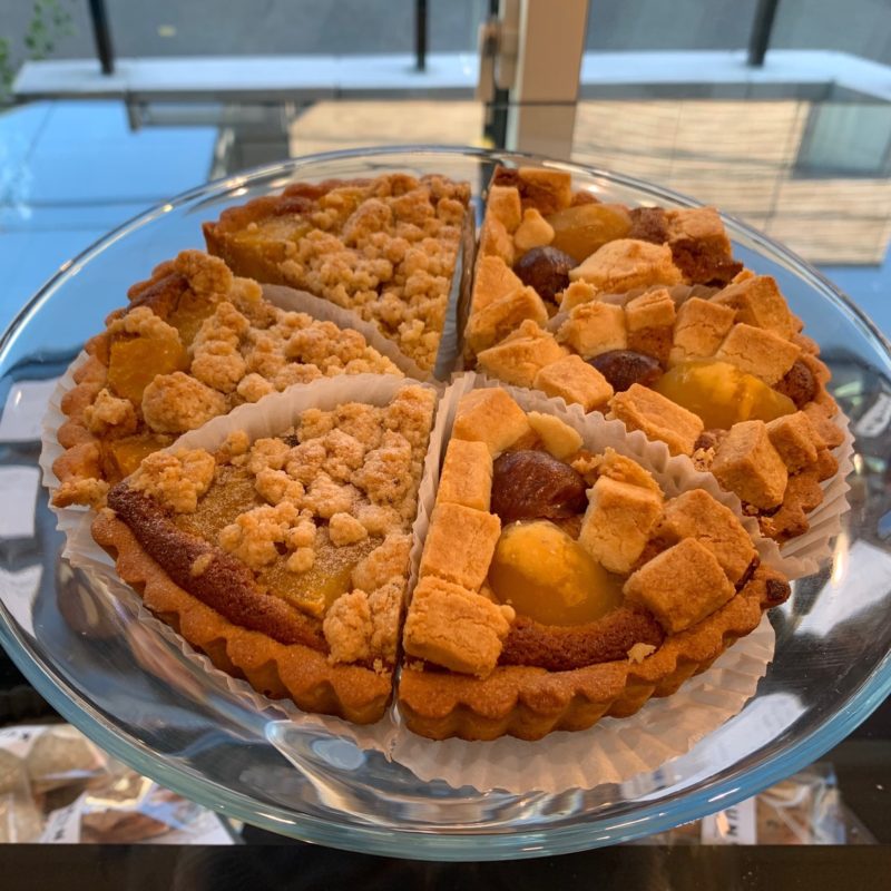 ▲季節のタルト(380円)、左から:安納芋のクランブルタルト、栗のタルト