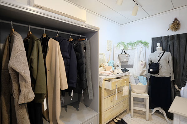 トップス、スカート、パンツ、アウターなど、どれも素材にこだわって選んだものばかり。