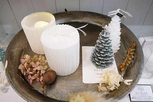 移転前から人気のヘアアクセサリーとカルトナージュに加え、キャンドルも新たにお目見え。