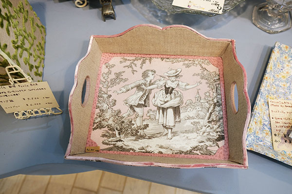 こちらも定番人気。カルトナージュ作家さんのコーナー。用途やイメージに合ったセミオーダーやフルオーダーの受付もしています。