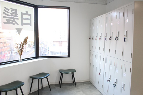 △ウエイティングスペースには鍵付きロッカーを完備