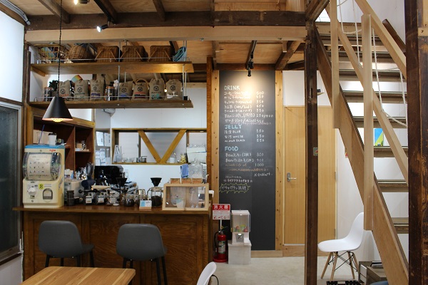 築70年の古民家をリノベーションした店内は、木の温もりとモルタルの質感が調和したスカンジナビアンモダンスタイル。ハンドドリップで淹れるコーヒーの香りと耳に心地よいBGMが、ゆったりとした居心地の良い空間を演出しています。