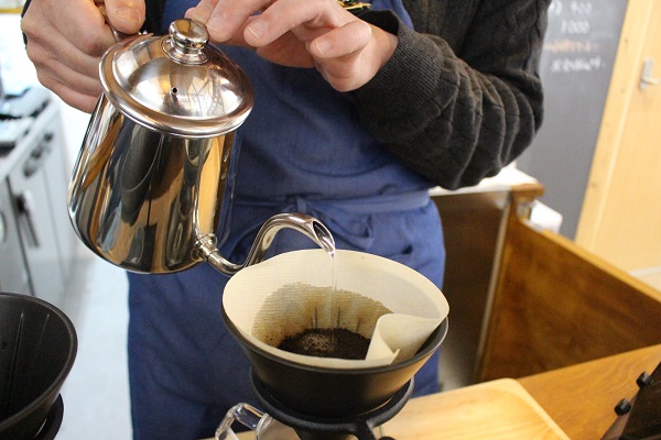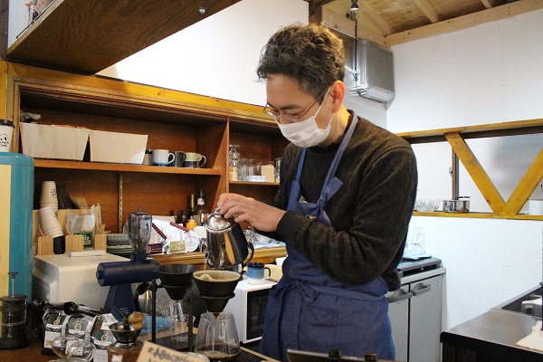 「挽きたて、淹れたてのコーヒーのおいしさを味わってほしい」と、注文ごとに豆を挽き、湯の温度や注ぎ方、蒸らし時間など、五感を研ぎ澄ませて、豆と向き合います。