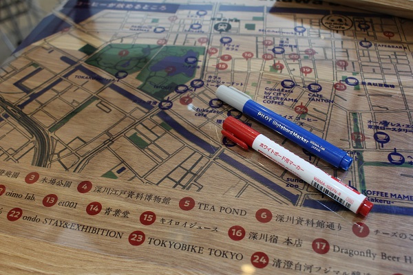 清澄白河のカフェマップ(なんと30軒以上も!)と、見どころ&グルメマップの2枚仕立てになっていて、専用のペンで自由に書き込むことができます。