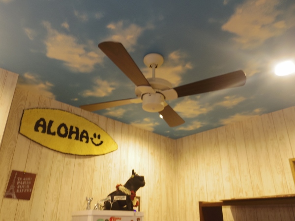 雨の日でも青空が広がる店内は、ハワイをイメージした空間。