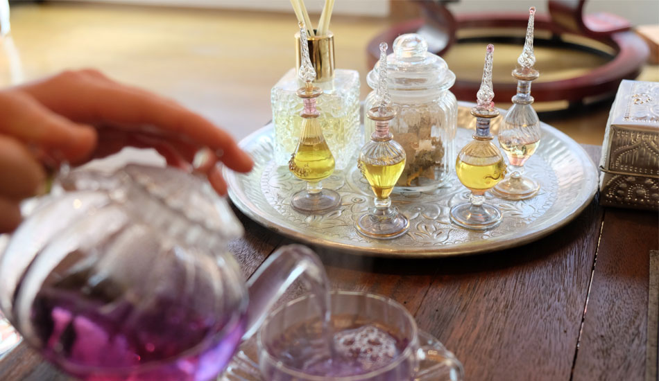 「施術が終わった後のお客様って、ふにゃふにゃ、トロトロ〜って感じになっちゃうんです」と、小田中さん。いつもの生活空間に戻る前に、ちょっとティータイムの時間を提供。