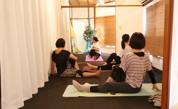 ふだんは3つの施術ルームなのですが、土・日の午前中は仕切りをすべて取り払い、ヨガを行っているのだそう。