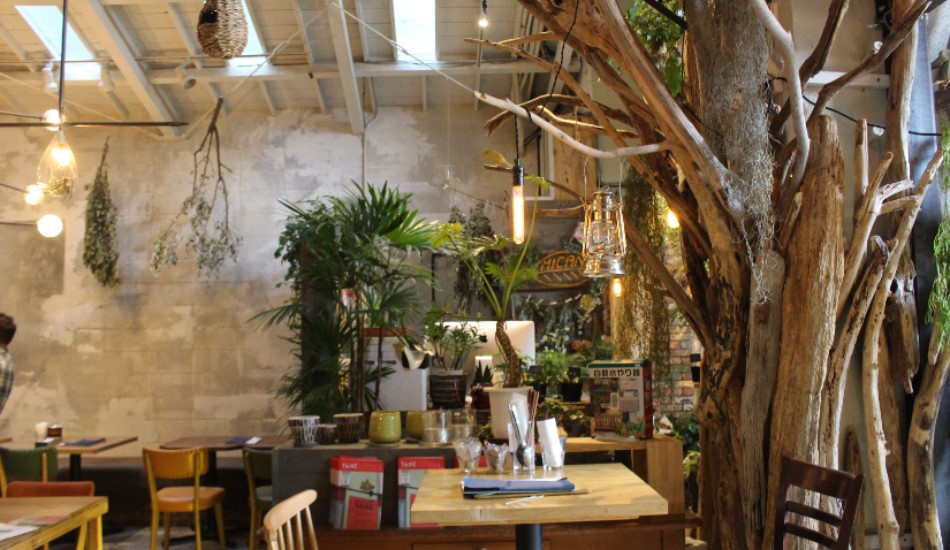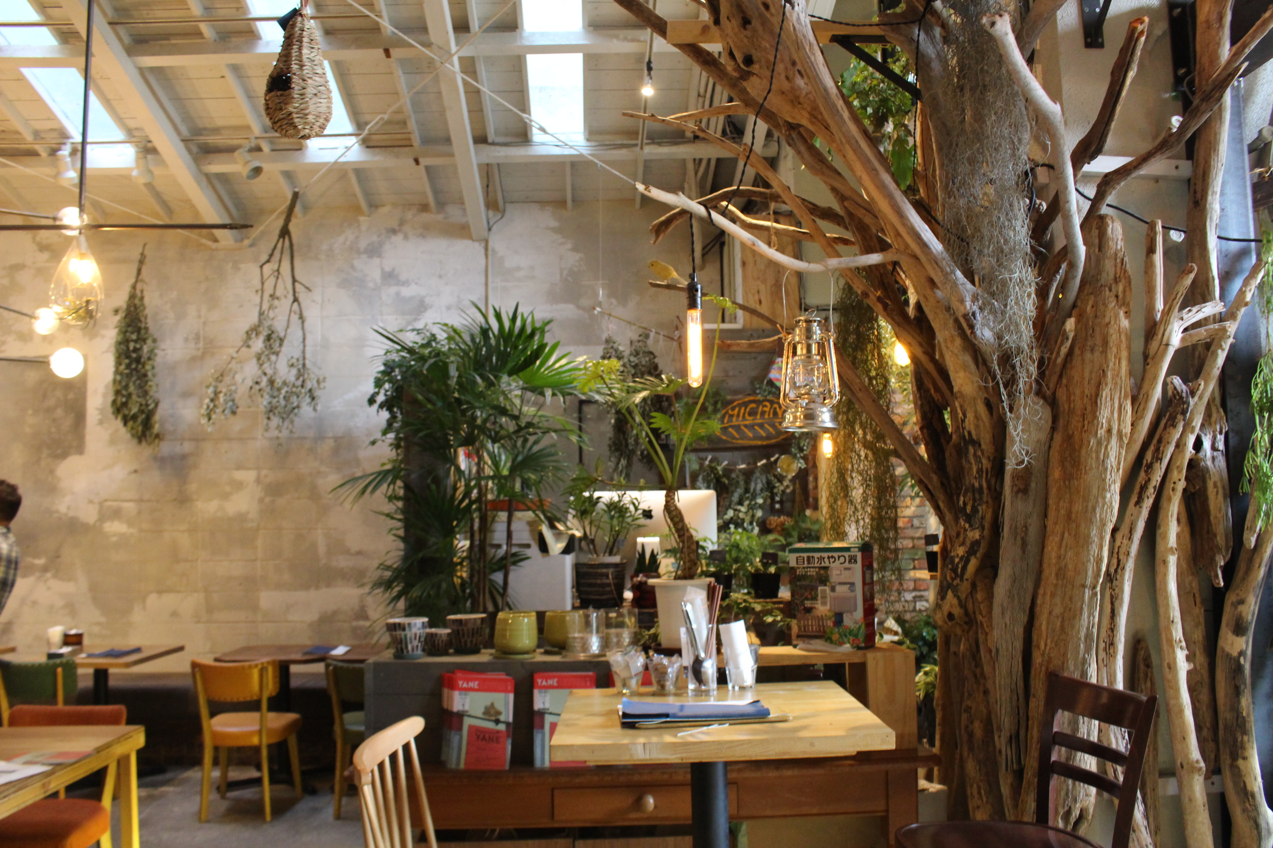 オフィスやショップが入居する「YANE」にあって、そこに所属するクリエイターたちの社員食堂であり憩いの場でもあり。そんな人たちが手掛け、集う場所だけに、お洒落感が半端ない!