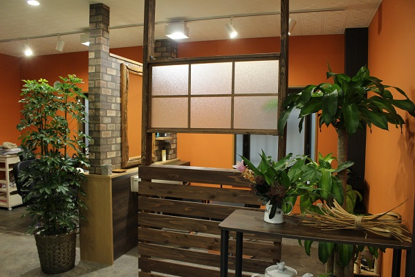 DIYで仕上げた店内は、ヴィンテージ調にオレンジやグリーンを効かせたお洒落な空間。