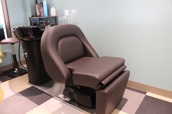 △ヘッドスパは2階のフルフラットシート完備のシャンプー台で行います。あまりの気持ち良さに寝落ちする人も