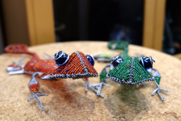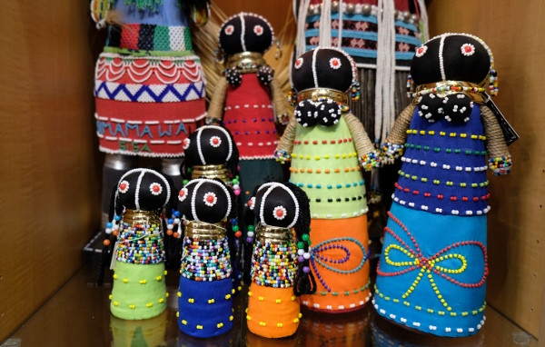 ビーズの細工が美しいこちらは、南アフリカの民族人形、ンデベレ人形(大3,900円、小1,900円)。